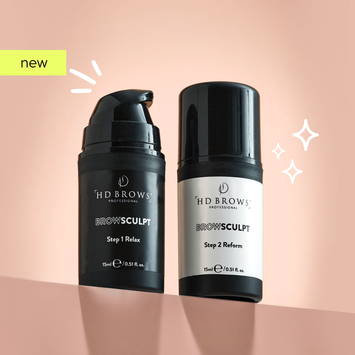 Introducing the new and improved HD Brows BrowSculpt. Step 1 and Step 2 are now available in pump bottles, giving you more control over how much you're using and helping to reduce product waste.