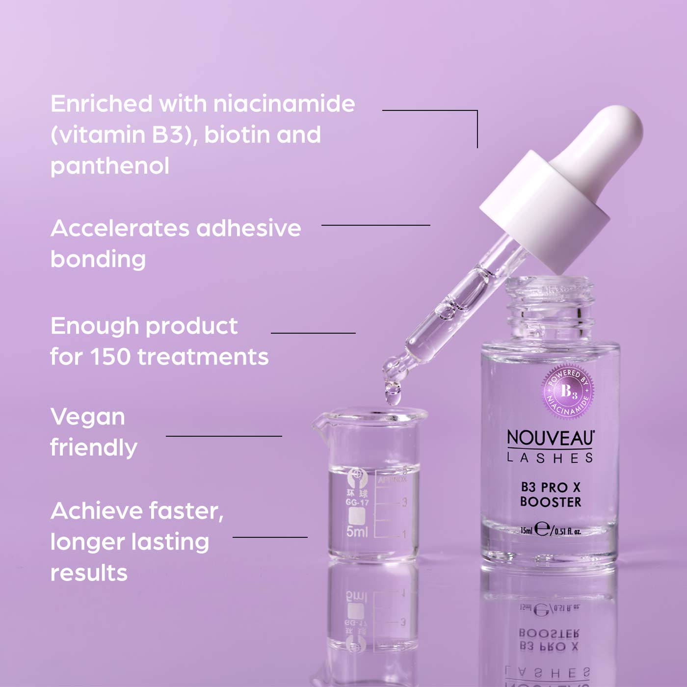 The Nouveau Lashes B3 Pro X Booster has been developed to support your lash extension treatments and help you achieve ultimate retention.