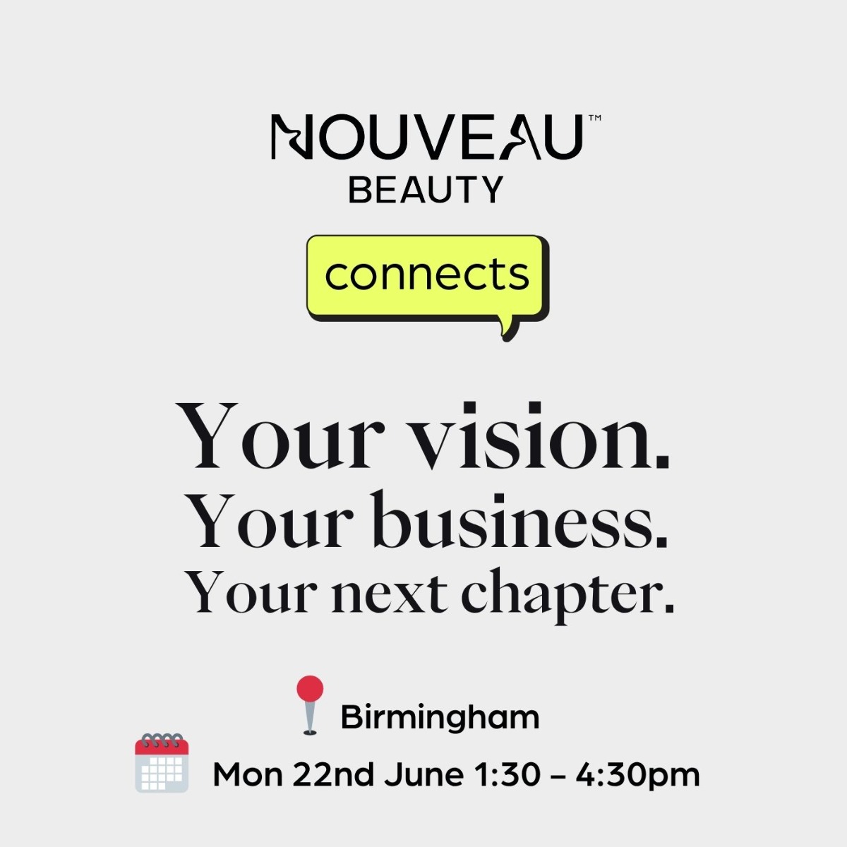 Join us for our next in-person Nouveau Beauty Connects events with Your Vision. Your Business. Your Next Chapter.